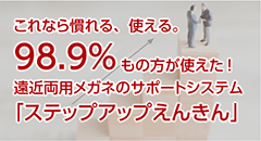 - 50 代以降に遠近両用メガネをかけ始めるなら、少しずつ目を慣らせる、シミズメガネの独自サポート「ステップアップえんきん」を利用する